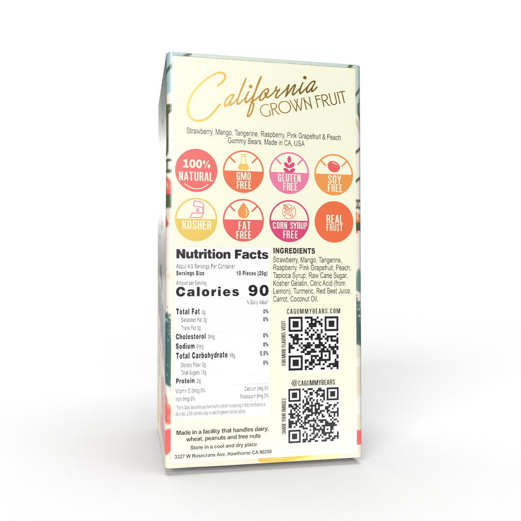 FRUIT MIX GUMMY BEARS - Festive Limited edition of our #1 BEST SELLER California Fruit Mix. This stunning gift box features gummy bears gliding down snow-capped mountains on snowboards. Adding a playful and festive touch to your holiday celebrations. Assortment of six mouthwatering fresh fruit gummy bear flavors, meticulously crafted in California. Prepare your taste buds: * Raspberry: Juicy berries bursting with flavor. * Strawberry: A delightful favorite for generations. * Pink Grapefruit: Refreshingly zesty twist. * Tangerine: Vibrant and citrusy burst. * Mango: Eexotic and tropical. * Peach: Summery sweetness Each gummy bear is crafted for exceptional flavor. Made with premium, non-GMO, fat-free, and gluten-free ingredients, they offer a guilt-free treat for both adults and children. Christmas, Holiday, Stocking Stuffers, Holiday Decor, Holiday Accessories, Holiday DIY & Crafts, Christmas Gifts, Gifts.