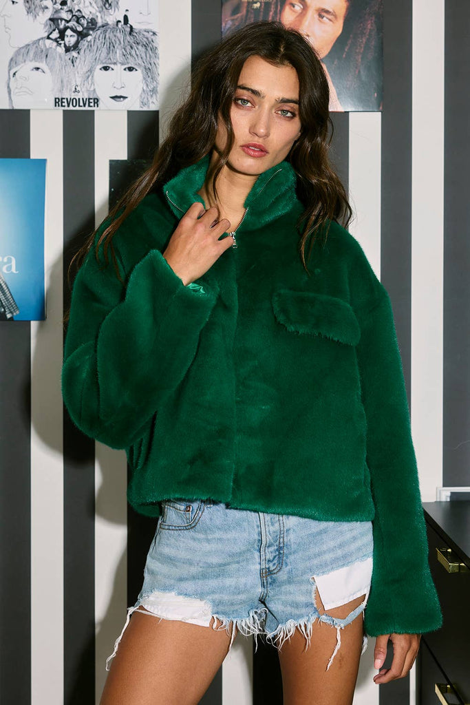 Zip-Up Faux Fur Crop Jacket