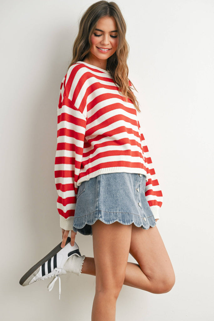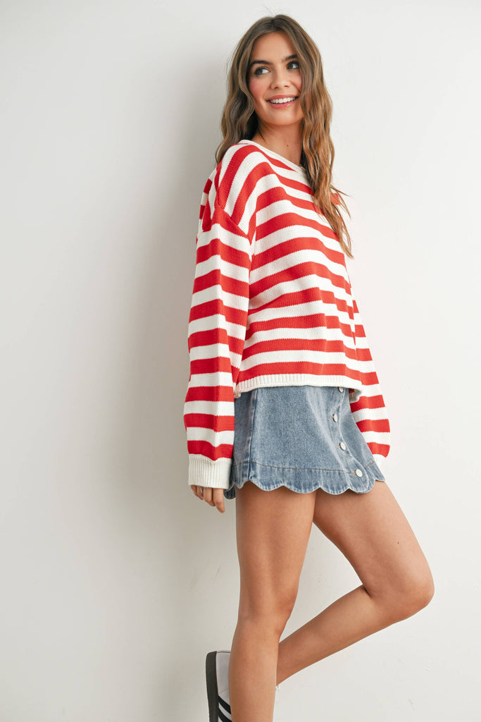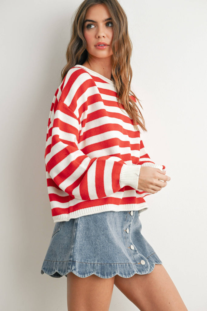 Timeless style meets everyday comfort with the Striped Sweater Top. Designed with a relaxed fit and crafted from soft, breathable fabric, this top is perfect for layering or making a statement on its own. Its classic stripes add a touch of effortless charm to any outfit, making it an ideal choice for casual outings or cozy gatherings.