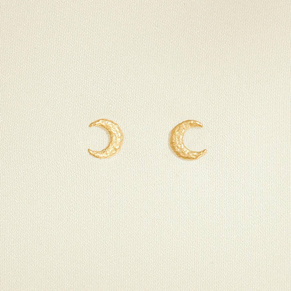 Artemis are dainty hammered crescent moon stud earrings. Let the moon’s creative energy guide you, like it does the gentle sway of the tides.