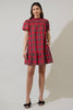 How cute is this Boswell Tartan Plaid Yare Short Sleeve Mini Dress! We are loving the plaid pattern with flutter short sleeves. The front has a smocked panel leading to a mock neck. It ends a mini hem with looser fit. You can pair it with red or black heels to create full look.