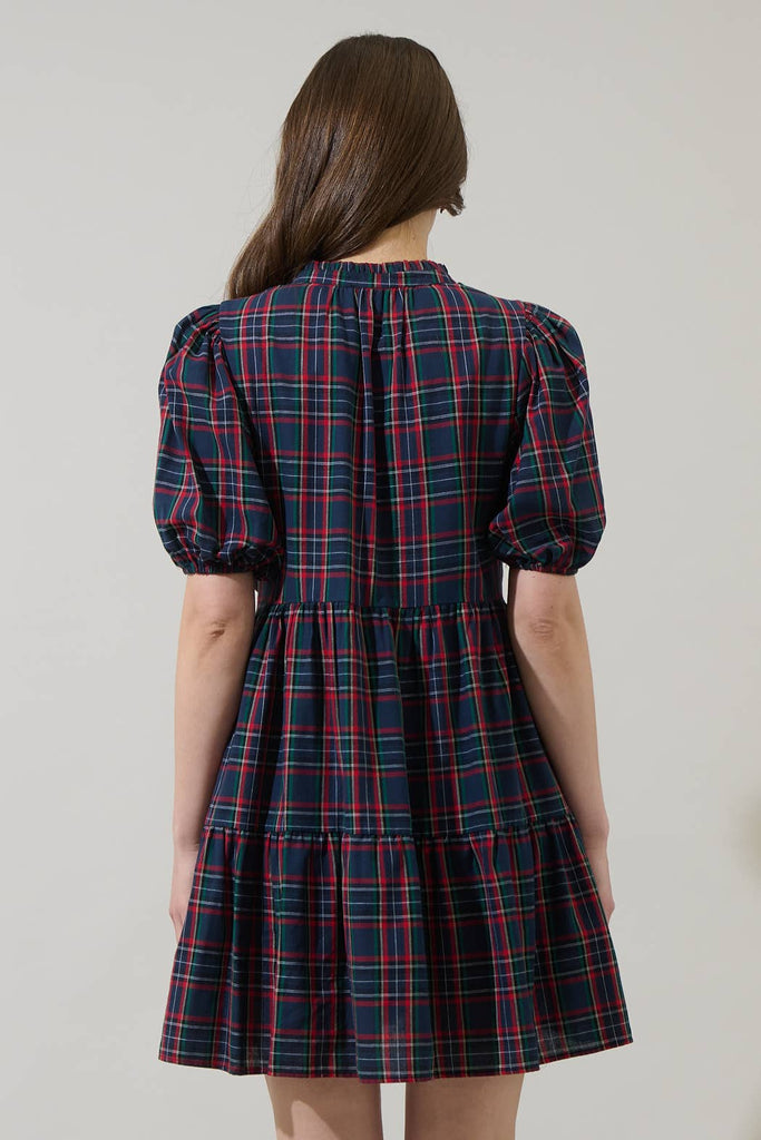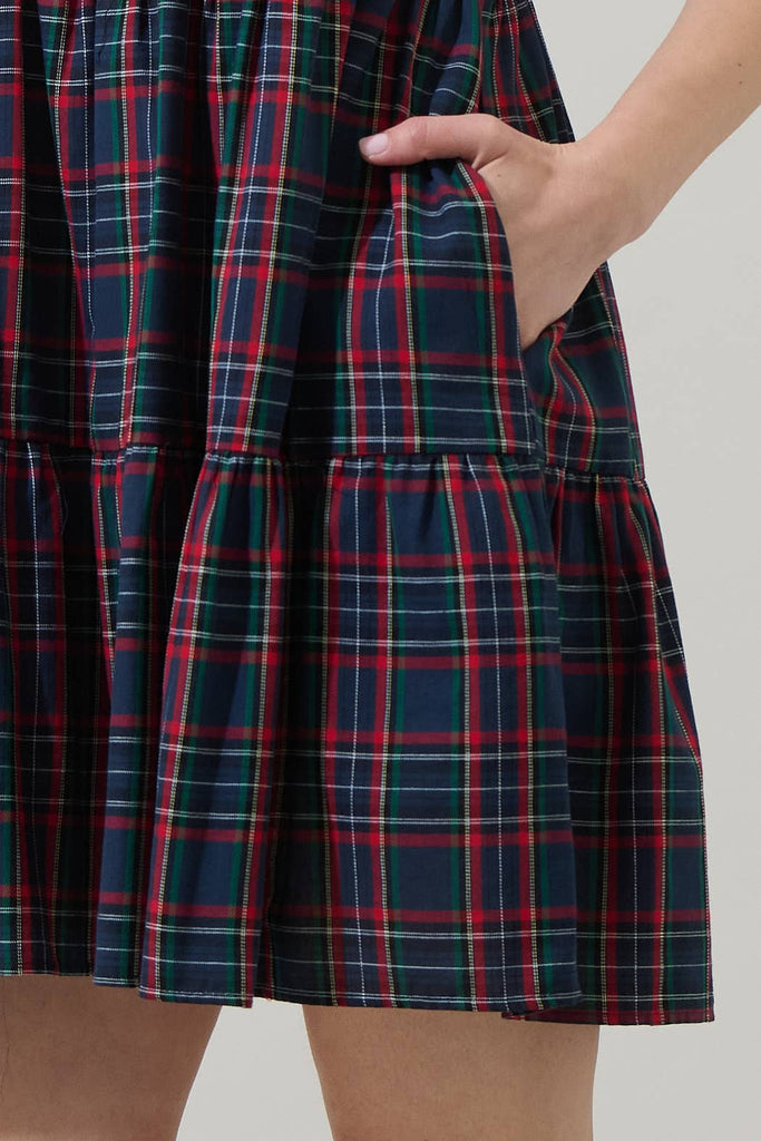 Get ready to love the Chapman Plaid Jacey Babydoll Mini Dress. A pretty plaid design shapes a ruffle split neckline that's framed by tucked bubble sleeves. The waist sits high to create a babydoll silhouette with a tiered mini skirt. Looks extra cute with heels or ankle boots.