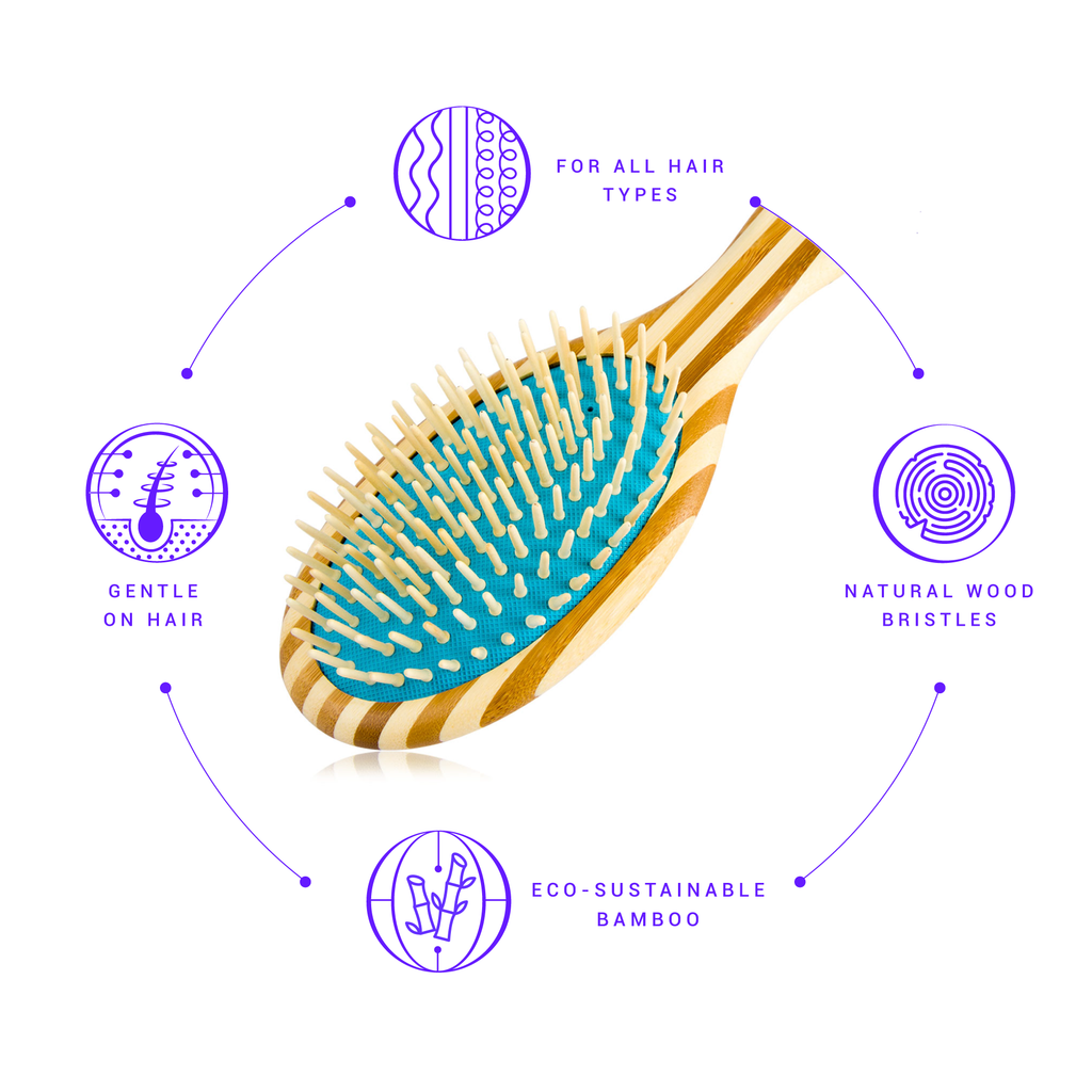 Upgrade your hair care Striped Bamboo Paddle Brushes, where sustainability meets style. Crafted with precision, these brushes blend functionality and elegance. • Eco-Friendly Design: Made from sustainably sourced bamboo, ensuring environmental responsibility. • Natural Wood Bristles: Promote healthier, shinier hair, ideal for gentle detangling and styling. • Versatile Use: Suited for daily hair care, including detangling and maintaining extensions. • Hair-Friendly: The unique 3D cushion minimizes breakage, suitable for all hair types. • Durable & Stylish: Long-lasting construction, perfect for a consistent hair care routine.